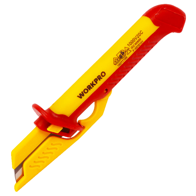 The WORKPRO WP344007 Insulated Cable Knife is a professional cable‑preparation tool featuring a replaceable straight blade for clean sheath and insulation cuts. Designed for electrical work, its insulated handle helps protect against live environments, while the compact 58 × 185 mm form offers excellent control in panels and tight spaces. Ideal for stripping outer jackets and shaping insulation on copper and aluminium conductors.