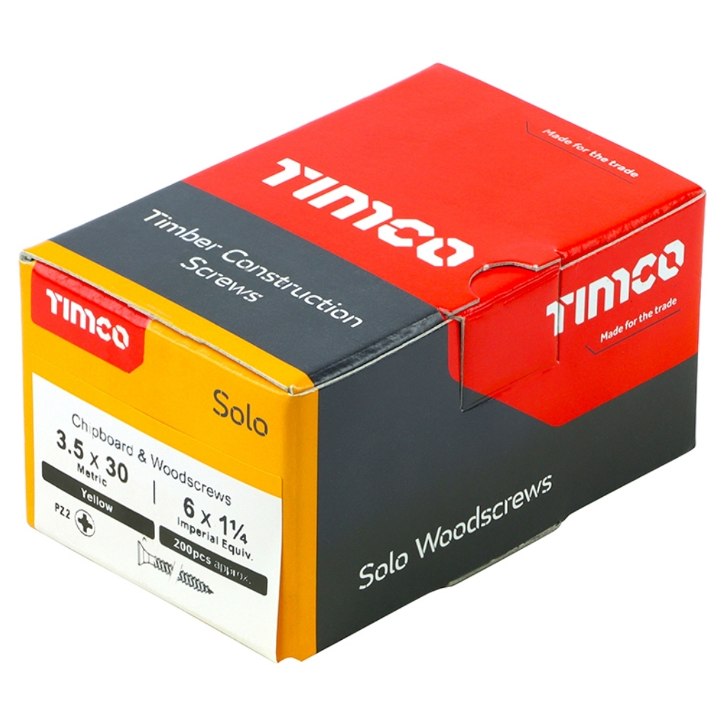The TIMCO 35030SOLOC Solo Chipboard & Woodscrew is a versatile single thread fixing designed for use in timber, man-made boards and masonry with a plastic plug. It highlights fast insertion and strong holding power with a sharp point and deep thread, while the wax lubrication improves driving performance and corrosion resistance. Ideal for general construction and joinery applications requiring reliable and efficient fixing.