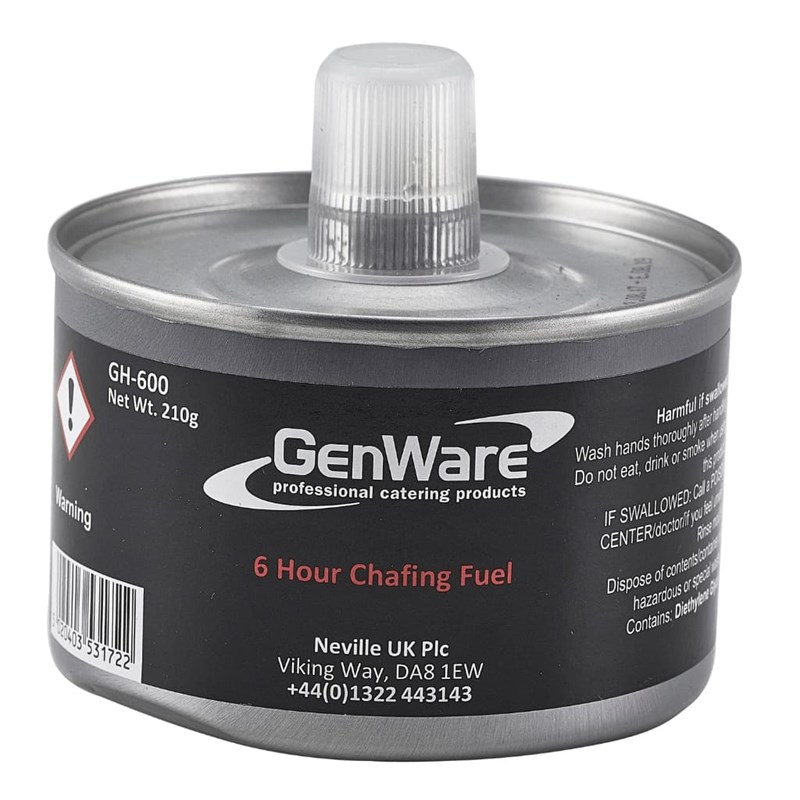The GenWare GH-600 Gen-Heat Adjustable Chafing Fuel is a reliable and efficient heat source designed for use with chafing dishes and food warmers. Featuring an adjustable wick, it allows controlled heat output for safe and consistent food warming. Ideal for catering, buffets, and hospitality settings, this fuel ensures dishes remain at optimal serving temperature throughout service.