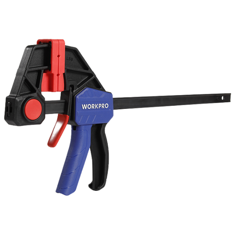 The WORKPRO WP232040 Heavy Duty Bar Clamp is a robust, quick‑release clamp designed for demanding woodworking and DIY tasks. Built with a reinforced nylon body and high‑quality hardened steel bars, it delivers up to 300 lbs of clamping force with a reliable metal ratcheting mechanism. A quick‑change button lets you convert it from a clamp to a spreader in seconds, while non‑marring, replaceable pads protect workpieces and enhance grip. The quick‑release latch enables fast width adjustments, and the ergonomically designed handle ensures a comfortable, secure hold.
