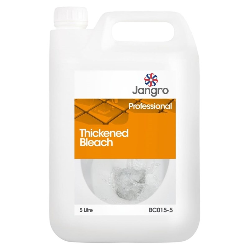 The Jangro BC015-5 Professional Thickened Bleach is a powerful disinfectant and cleaner specially formulated with a thickened consistency to cling to vertical surfaces. It effectively kills bacteria, viruses, and mould while removing stains and whitening surfaces. Ideal for use in healthcare, commercial, and food preparation areas, it provides reliable hygiene and deep cleaning performance.