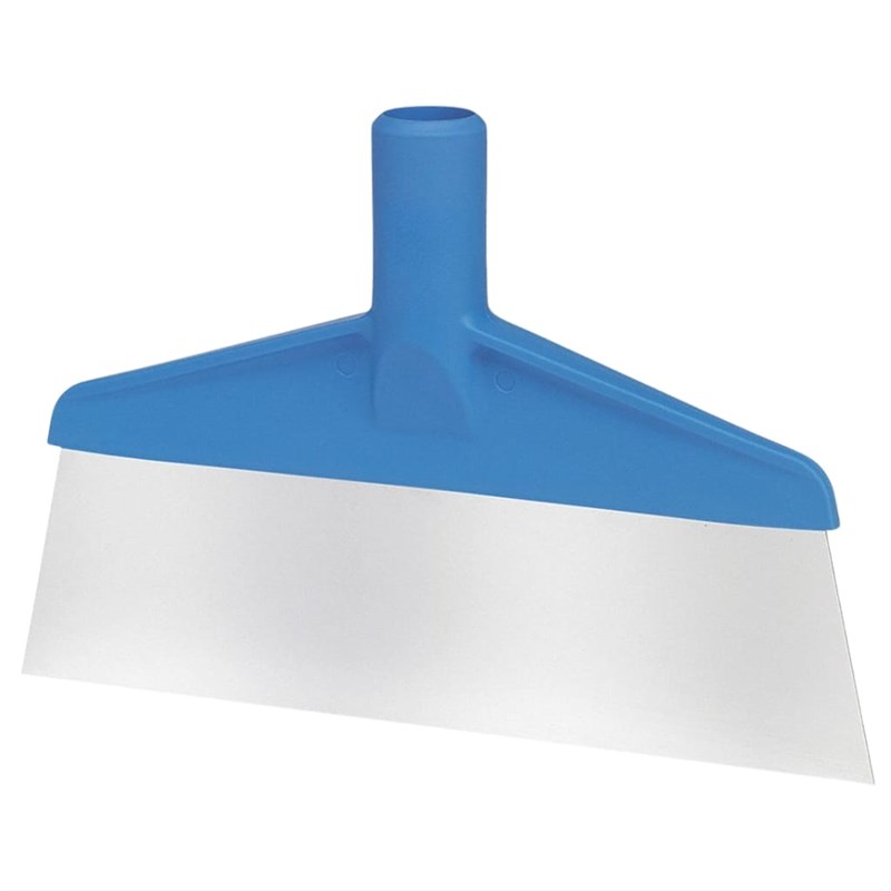 The Hillbrush MSC5B Stainless Steel Floor Scraper is a heavy-duty cleaning tool designed to remove stubborn food debris and residue from hard surfaces. It highlights a robust stainless steel blade and a threaded handle socket, making it ideal for demanding hygiene environments such as commercial kitchens and food processing areas.
