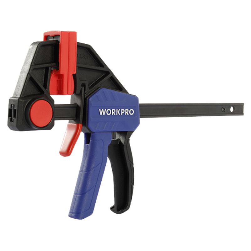 The WORKPRO WP232035 Lightweight Bar Clamp is a versatile, one‑handed quick‑release clamp designed for fast, convenient holding during assembly, DIY, and light woodworking. It features a trigger mechanism for easy adjustment and instant release, and can be quickly converted into a spreader for added versatility. Soft, non‑slip pads grip securely while protecting the workpiece, and the reinforced nylon construction keeps the tool sturdy yet lightweight. Delivering up to 150 lbs of clamping force, it’s an efficient choice for manufacturing tasks, assembling components, and general workshop use.