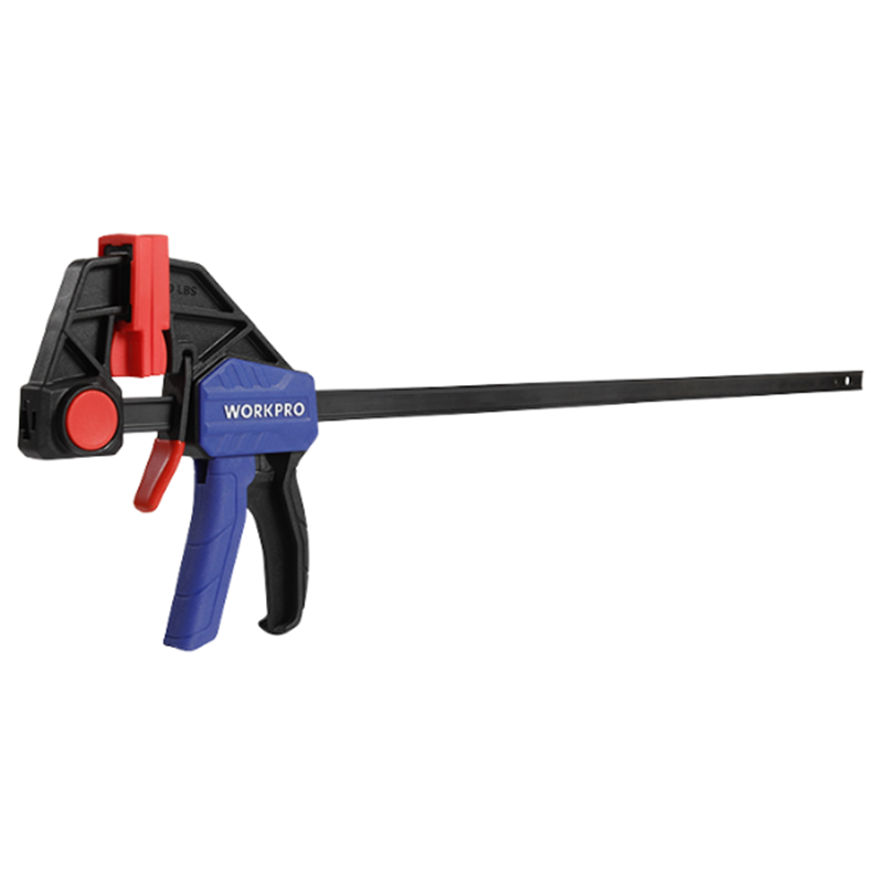 The WORKPRO WP232037 Lightweight Bar Clamp is a versatile, one‑handed quick‑release clamp designed for fast, convenient holding during assembly, DIY, and light woodworking. It features a trigger mechanism for easy adjustment and instant release, and can be quickly converted into a spreader for added versatility. Soft, non‑slip pads grip securely while protecting the workpiece, and the reinforced nylon construction keeps the tool sturdy yet lightweight. Delivering up to 150 lbs of clamping force, it’s an efficient choice for manufacturing tasks, assembling components, and general workshop use.