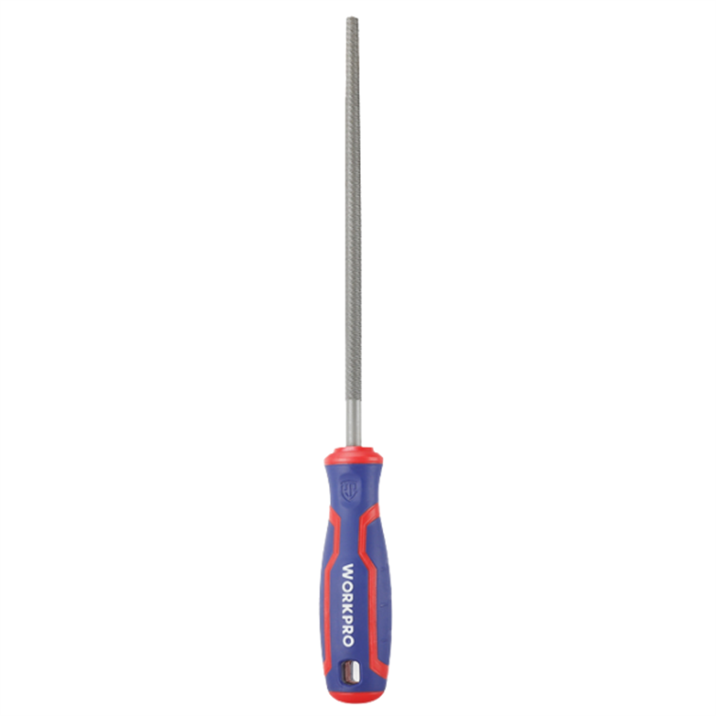 The WORKPRO WP251005 8" Round File with Handle is a cylindrical file designed for enlarging, shaping, and smoothing holes, radii, and concave profiles in metal, wood, and plastics. Made from durable hardened steel with an ergonomic, anti‑slip handle, it provides controlled material removal and comfortable handling for workshop and DIY tasks.