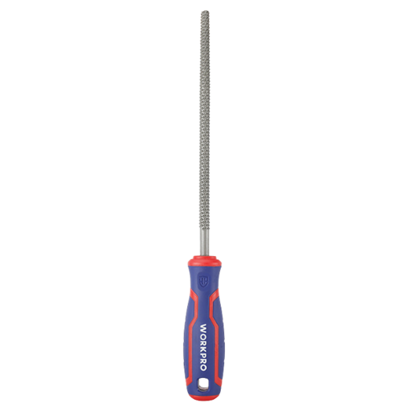 The WORKPRO WP251013 8" Round Wood Rasp is a fast‑cutting rasp designed for shaping and enlarging holes, curves, and concave profiles in wood. Its fully round profile and aggressive teeth deliver rapid stock removal, while the ergonomic, anti‑slip handle provides secure control for carpentry, joinery, and DIY projects.