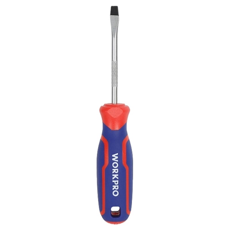 The WORKPRO WP221019 6.5 × 100 mm Slotted Screwdriver is a robust, everyday driver for general fastening. Made with a chrome‑vanadium steel blade, magnetic tip and a tri‑colour soft‑grip handle, it offers positive drive, good torque and comfortable control for DIY and trade use.