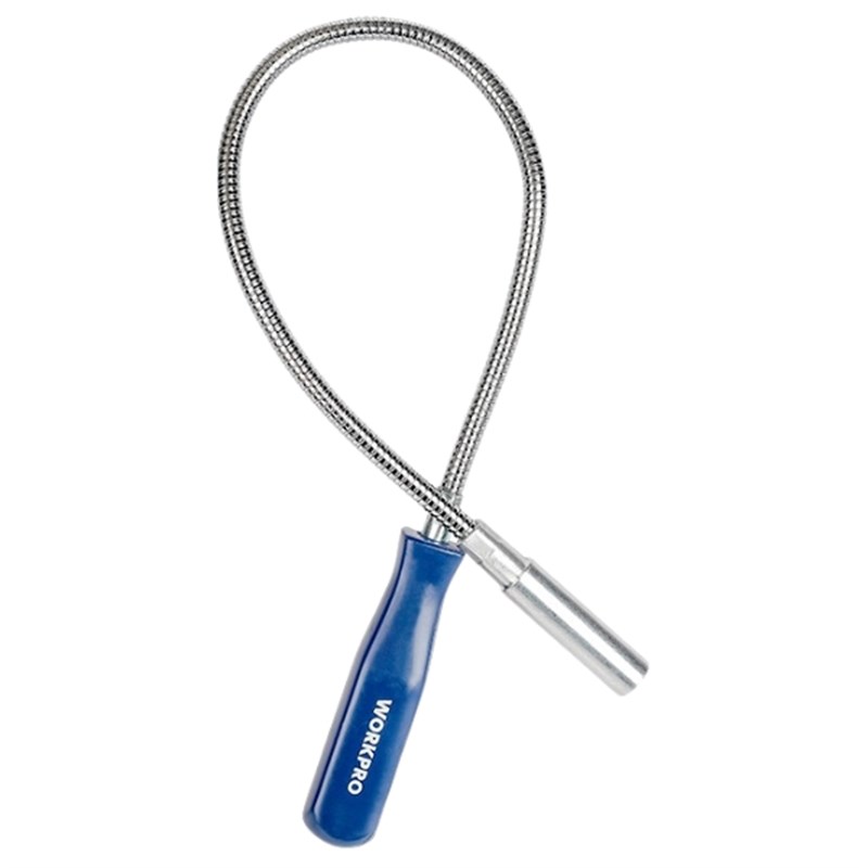 The WORKPRO WP319007 Flexible Magnetic Pick-Up Tool is a long‑reach retriever designed to fish out dropped screws, nuts, and other ferrous parts from tight or awkward spaces. It has a powerful magnet and a flexible shaft that holds its shape, making it ideal for automotive, workshop and DIY use.
