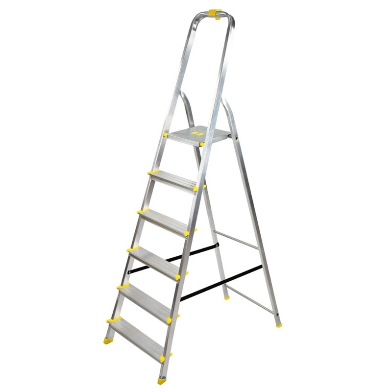 The Bayersystem BS-DA6/H 6-Tread Aluminium Step Ladder is a lightweight and durable ladder designed for both domestic and professional use. Made from high-quality aluminium, it offers a strong and stable platform for reaching higher areas safely. With 6 non-slip treads and a compact design, it is easy to transport and store. Ideal for tasks such as painting, cleaning, and general maintenance, this step ladder provides convenience, stability, and reliability for everyday use.