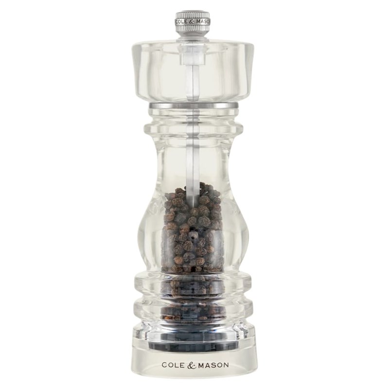 The Cole & Mason H233106 London Acrylic Pepper Mill is a stylish and functional addition to any kitchen or dining table. Made from clear, durable acrylic, it provides a modern look while allowing easy monitoring of pepper levels. Equipped with a high-quality grinding mechanism, it delivers consistent and adjustable grinding for perfect seasoning every time.