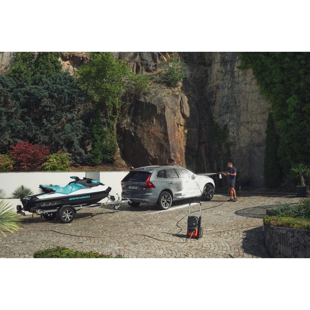 The Husqvarna PW360 Pressure Washer is a versatile high-performance electric washer designed for efficient outdoor cleaning. Featuring a powerful induction motor, durable metal pump, and an innovative 3-in-1 Multi-Lance for quick nozzle changes, it easily adapts to different cleaning tasks. With a long flexible hose, premium foam sprayer, and convenient onboard storage, it delivers powerful and practical cleaning performance around the home.