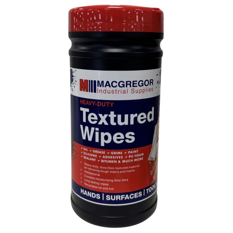 The Fentex Muckyz E8W100 Textured Heavy-Duty Wipes are strong dura-fibre wipes designed to tackle the toughest industrial messes. Antibacterial and enriched with Aloe Vera, they remove paint, sealant, oil, grease, and more while keeping hands soft and protected, all in a recyclable tub.